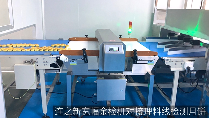 连之新宽幅金属检测机食品厂检测月饼使用现场