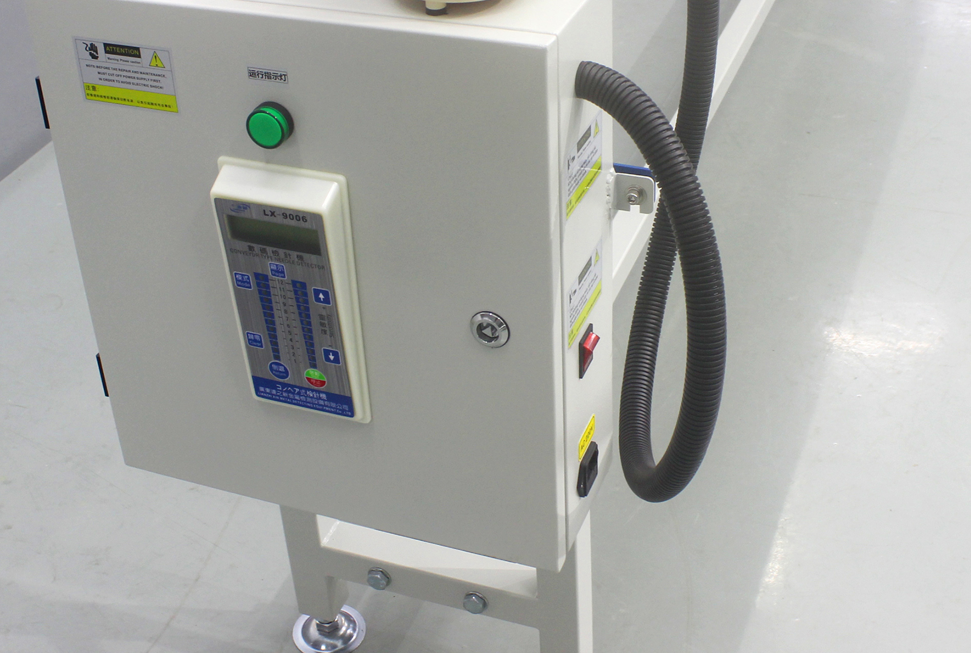 4、具有极高的灵敏度和抗干扰性能,能适应长时间使用,按规定使用检测有效率达100%。当检测到断针、铁质物体时,发出声、光两种报警。